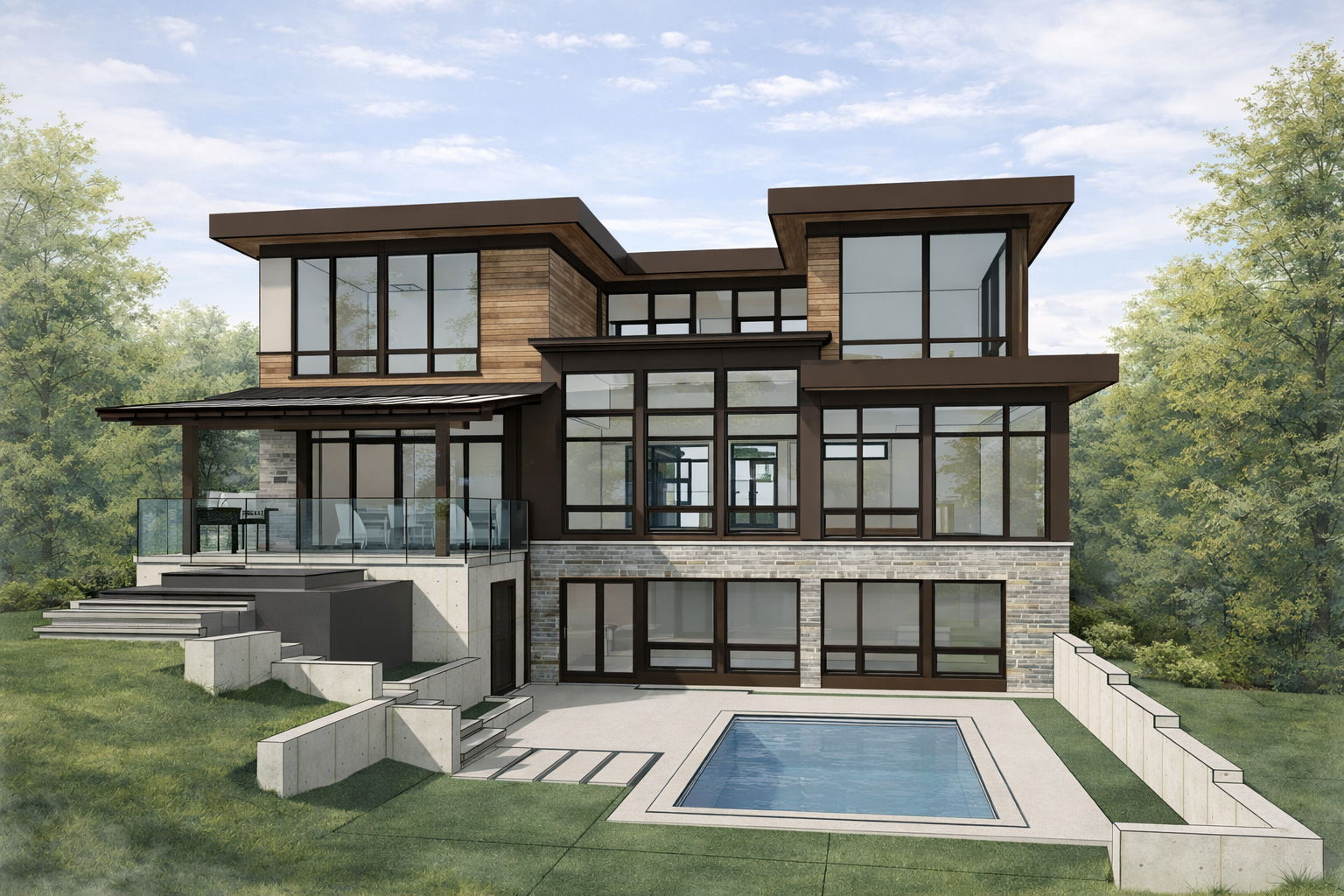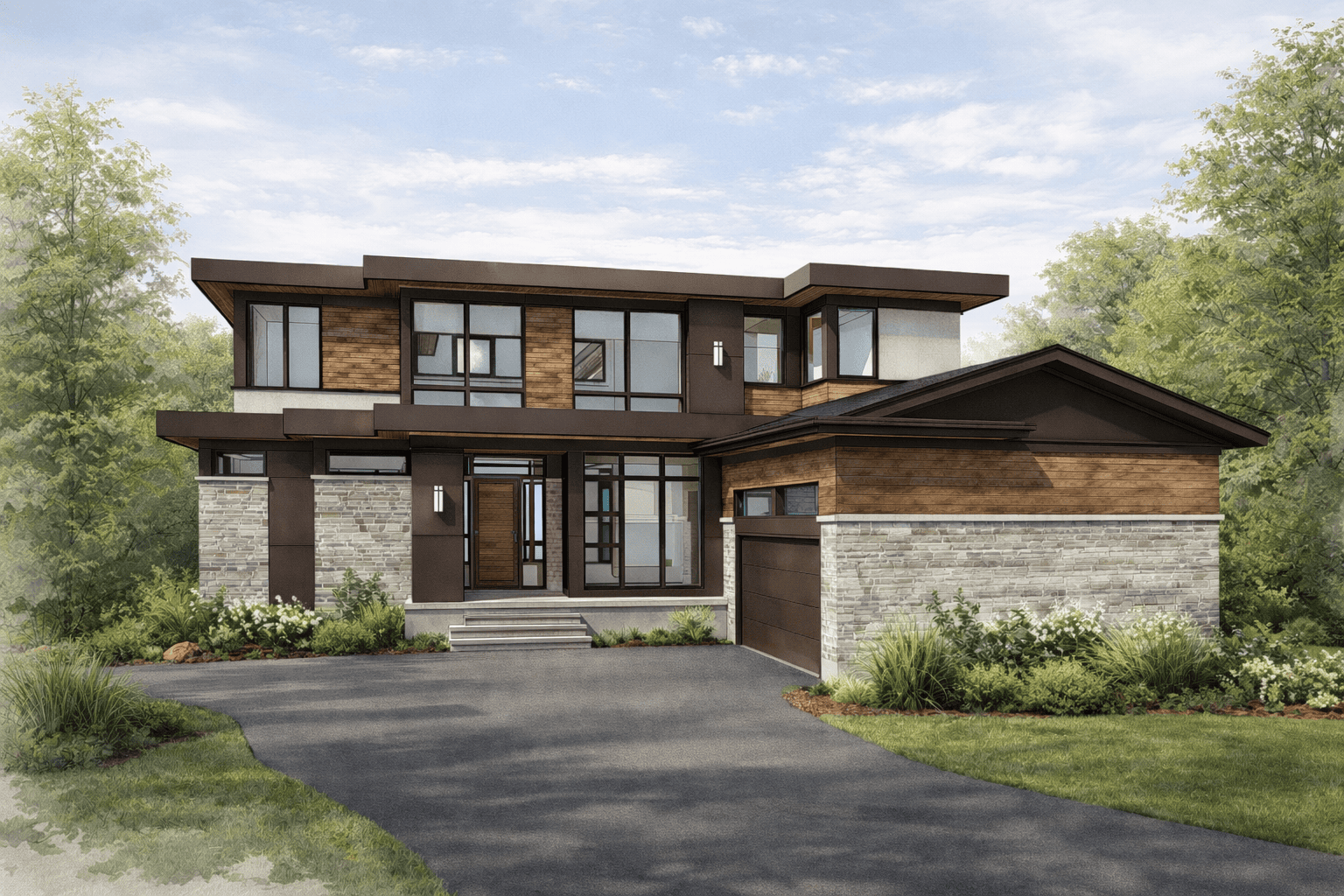 A complete vision for your property—additions, terraces, driveways, walkways, pool placement, and outdoor living - Front elevation design